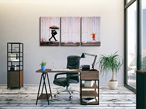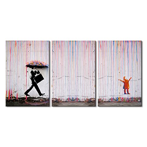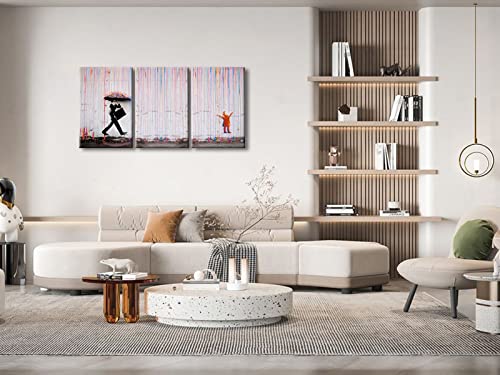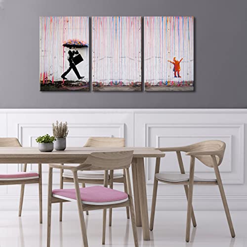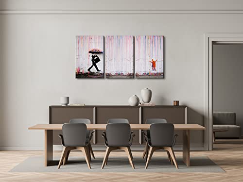 Wieco Art - لوحات قماشية بانكسي الشهيرة للحائط صورة ليوم ممطر عصرية كبيرة ملهمة بلون رمادي صور حب مطبوعة كأعمال فنية لغرفة الطعام والمطبخ وديكور المنزل والمكتب من ويكو آرت من 3 قطع