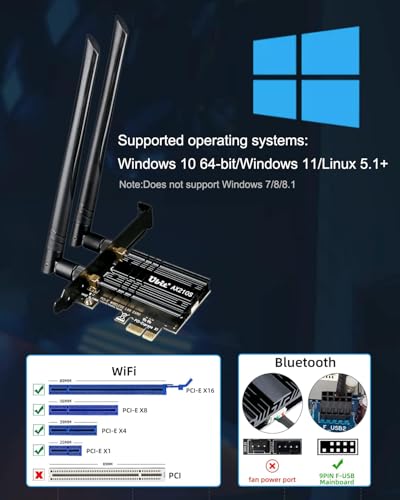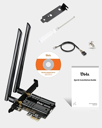 Ubit - بطاقة واي فاي يوبيت ثلاثية النطاق 5400 ميجابت في الثانية 5.2 بلوتوث بمنفذ الملحقات الإضافية السريع، محول شبكة محلية لاسلكية AX210 مع مو-ميمو و اوفدما، وقت استجابة منخفض للغاية (64 بت)
