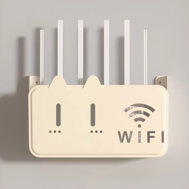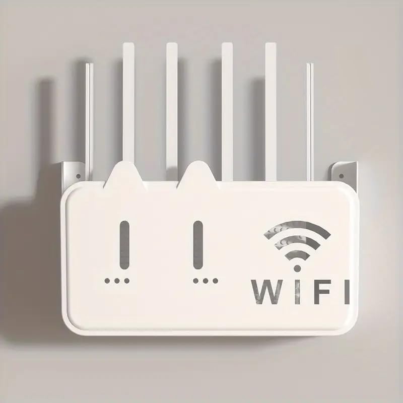- ٥) حماية إضافية: يحافظ على راوتر الواي فاي من الغبار والسقوط العرضي، مع تصميم يسمح بتهوية مثالية للجهاز