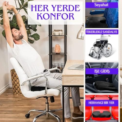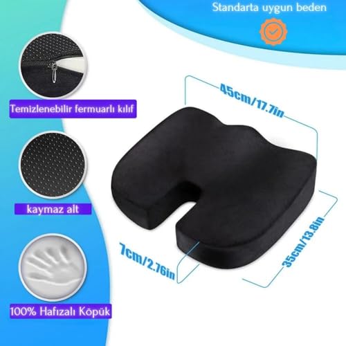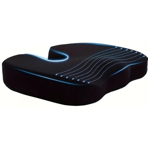 Wiforte - وسادة مقعد لتقويم العظام من ويفورتي - وسادة دعم العصعص وتخفيف ألم البواسير، مصنوعة من إسفنج فيسكو، حبقة مقعد مرنة بمقاس قياسي، لون أسود