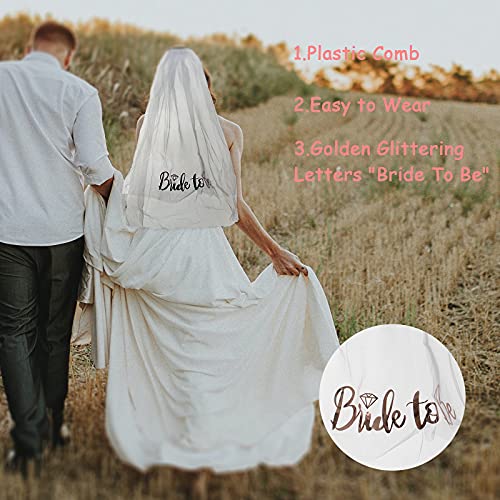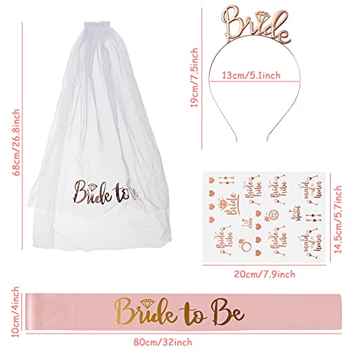 WIFUN - طقم اكسسوارات حفلة توديع العزوبية مكون من وشاح وطرحة مطبعة بعبارة "Bride to Be" وتاج على شكل طوق للرأس مزين بكلمة "Bride" وتاتو مؤقت لحفلات الزفاف وتوديع العزوبية وحفلات العروس من ويفون