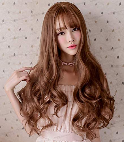 Other - باروكة نسائية طويلة ومموجة بحجم كبير ونمط كوري مع غرة