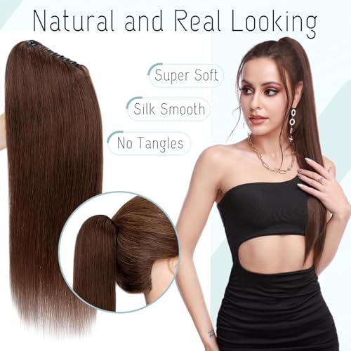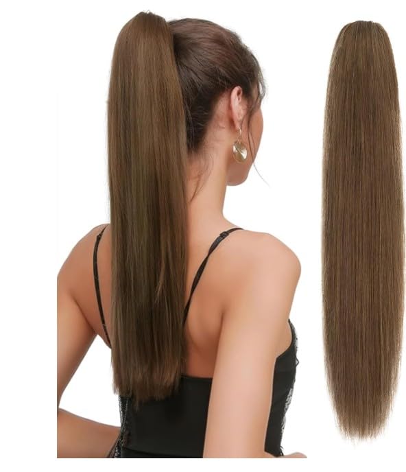 Generic - شعر مستعار مفرود بمظهر طبيعي بتسريحة ذيل الحصان لكامل الراس بلون طبيعي للنساء والفتيات من 50 الى 55 سم -jw-248-10 10 بني فاتح