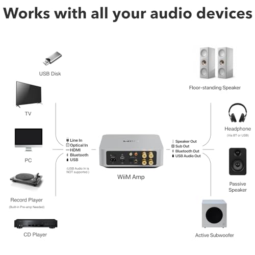 WiiM - مضخم واي اي اي ام: مضخم بث متعدد الغرف مع اير بلاي 2 وكروم كاست ومنفذ HDMI وتحكم صوتي | بث سبوتيفاي وامازون ميوزيك وتيدال والمزيد | ريموت كنترول متضمن | فضي