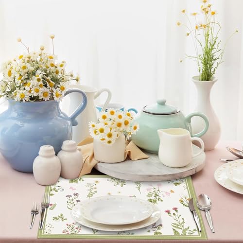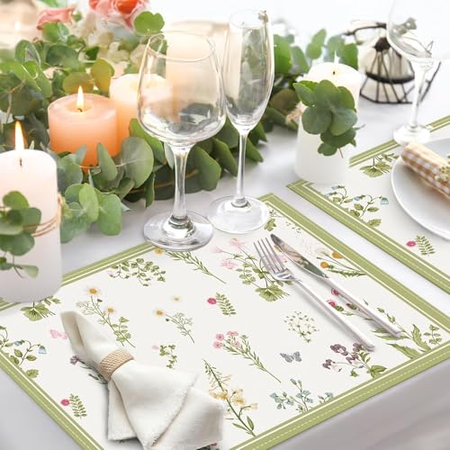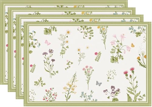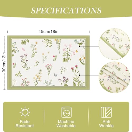 Generic - مفارش بتصميم الزهور البرية، مجموعة من 4 قطع، نباتات الربيع، اوراق الشجر، مفارش خضراء، مفارش قابلة للغسل للمطبخ والطاولة والديكور الداخلي والعطلات وديكور الحفلات، 30 × 45 سم