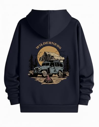 Generic - هودي للتخييم من وايلدرنيس ادفنتشر، سويت شيرت بلوفر اسود مع رسومات سيارة وغابة عتيقة، كم طويل مبطن حراري، ملابس كاجوال للخريف والشتاء - مقاس XL