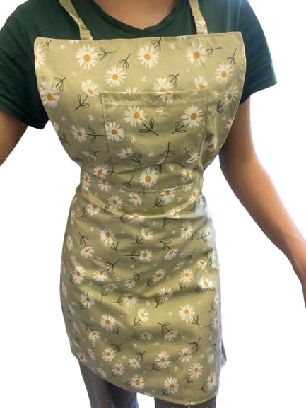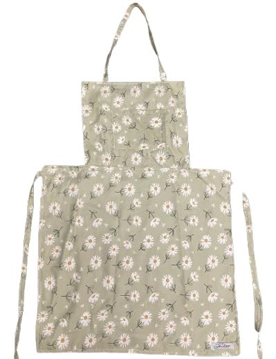 Generic - مريلة مطبخ قطنية بتصميم الأزهار البرية، لون اخضر زيتوني فاتح مع زهور بيضاء، مريلة طبخ عملية للطهي والخبز