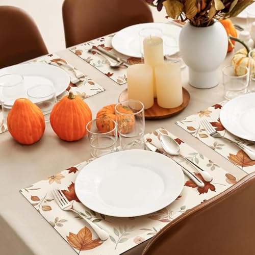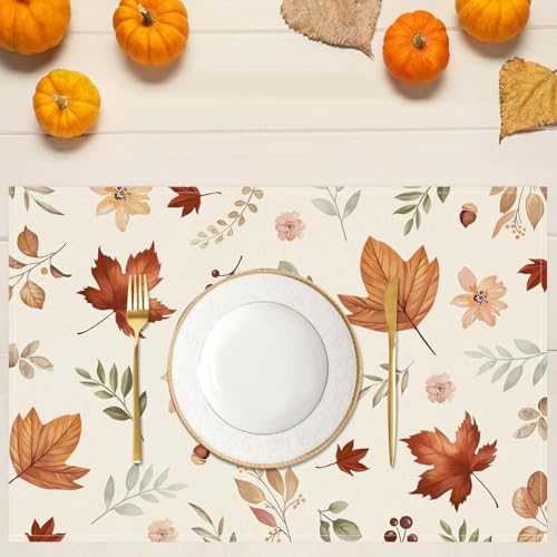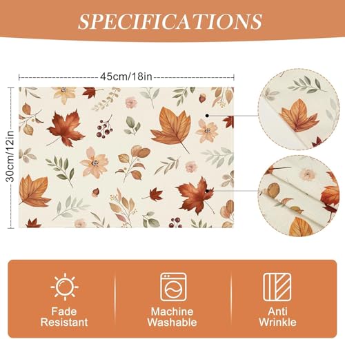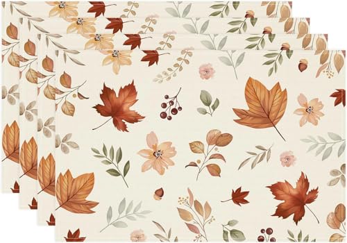 Generic - طقم مفارش طاولة مزينة بزهور برية وأوراق الخريف، مفارش طاولة قابلة للغسل للخريف وعيد الشكر، ديكور للطاولة، وللاستخدام الداخلي، والعطلات، وديكور الحفلات، 4 قطع، 30 × 45 سم