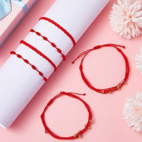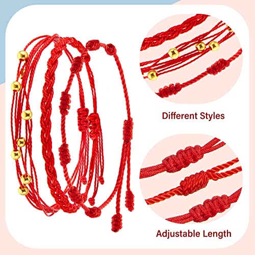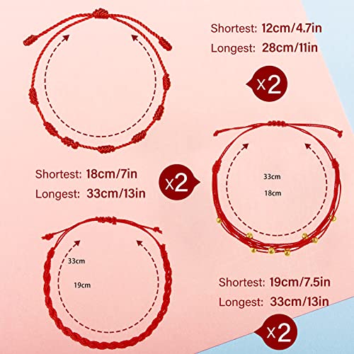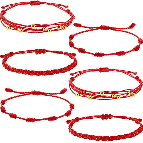 WILLBOND - 6 قطع من اساور سلسلة الصيف سوار احمر سوار حبل احمر قابل للتعديل كابالا سوار سلسلة عقدة حمراء تميمة للحماية، عين الحسد والحظ السعيد للصداقة
