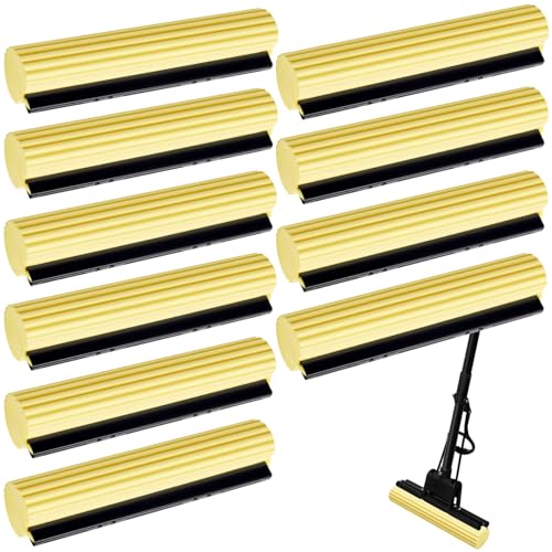 Willinglong - 10 قطع من ممسحة دوارة قابلة لاعادة التعبئة من ويلينج لونج، راس ممسحة باسفنجة بي في ايه قابلة لاعادة التعبئة للمنزل والحمام والعمل والجراج والمطبخ (اصفر)