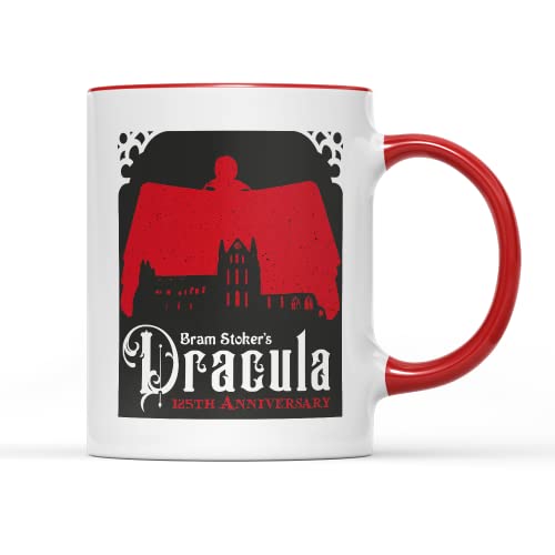 Willow Gifts - كوب شاي وقهوة بتصميم دراكولا من ويلو جيفتس - هدية لشخصية برام ستوكر للذكرى السنوية 125 لرواية رعب قوطية خيالية مصاص دماء ترانسيلفانيا ويتبي مقابض حمراء سيراميك