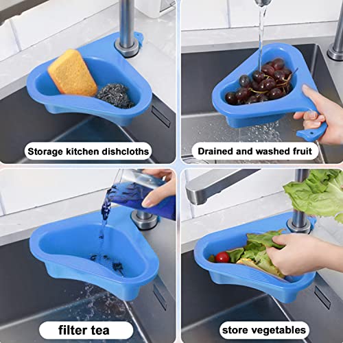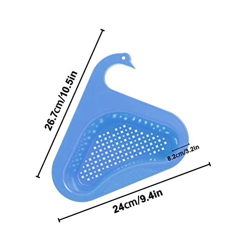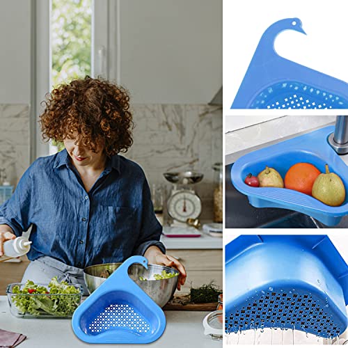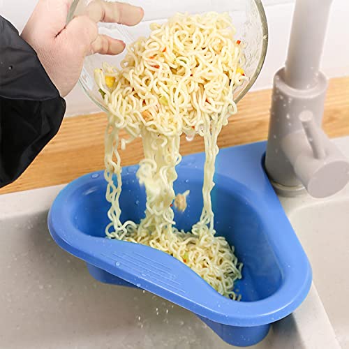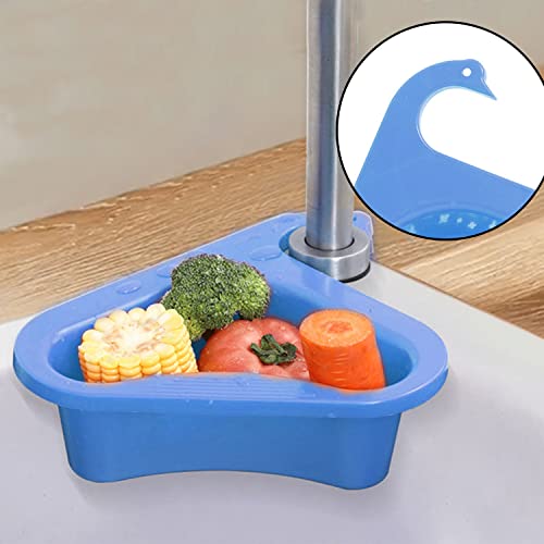 Win-Win - رف تخزين مثلث بشكل بجعة من قطعتين، سلة تصفية وتنظيم الخضروات والفواكه للمطبخ ومناسبة للشاي (ازرق)، بولي بروبلين