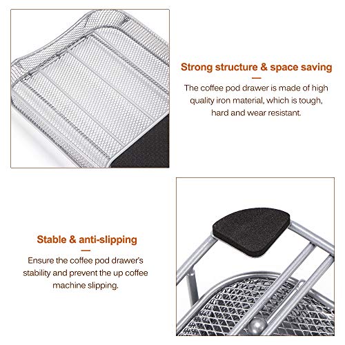 - هيكل قوي وموفر للمساحة. درج كبسولات القهوة مصنوع من مادة الحديد عالية الجودة، وهي متينة وصلبة ومقاومة للتآكل. يمكن لدرج كبسولات القهوة ذو الهيكل القوي ثقب ماكينة القهوة الخاصة بك في الأعلى وتخزين كبسولة القهوة في الدرج في نفس الوقت، مما يوفر المساحة.