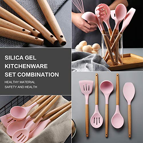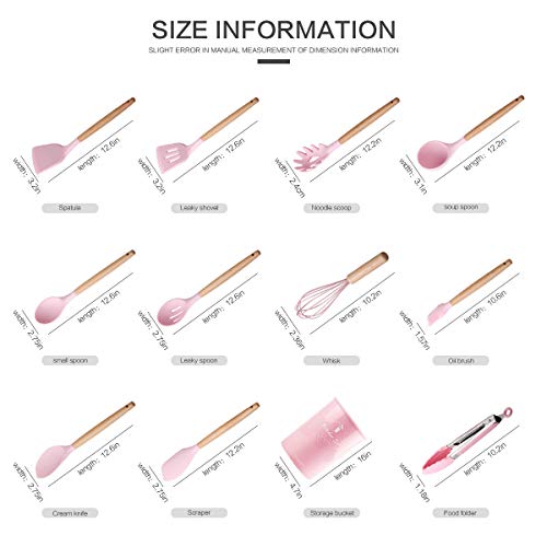 - مجموعة أدوات طبخ غير لاصقة من السيليكون، ملعقة سباتولا بمقبض خشبي، 12 قطعة للمطبخ والمخبوزات