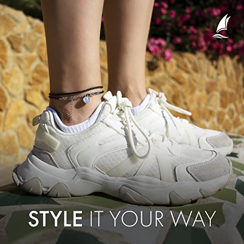 Wind Passion - إسورة من ويند باشن للنساء، مصنوعة من الستانلس ستيل، بلون فضي وتصميم بحري، مقاس قابل للتعديل من 19.6 إلى 27.9 سم