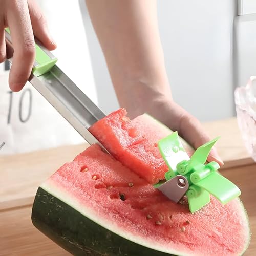 Generic - قطاعه البطيخ على شكل طاحونة هوائية: أداة تقطيع البطيخ المثالية - هذه القطاعة البلاستيكية على شكل طاحونة هوائية مقاس 27*3*7.5 سم وقاطعة وأداة سلطة فواكه تخلق بسهولة وأمان مكعبات بطيخ موحدة