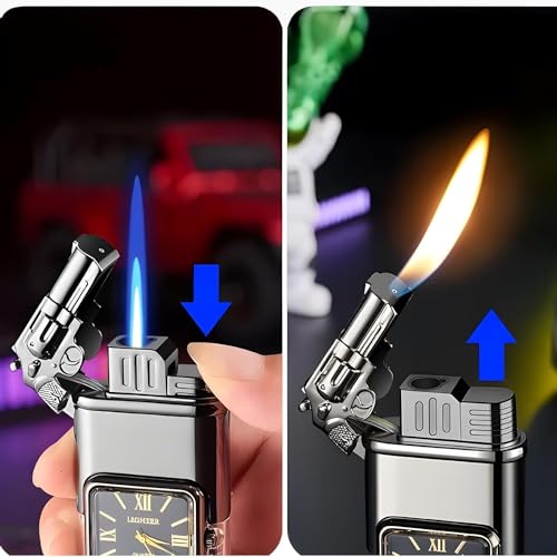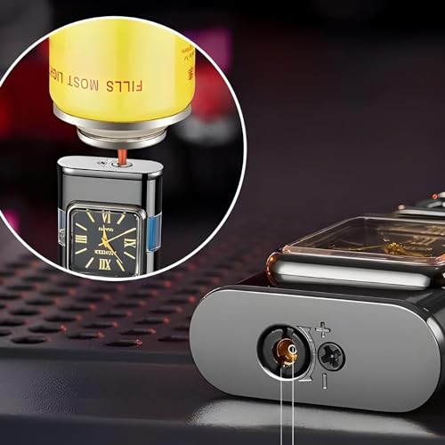 - 【تمزج بين الأناقة والعملية】- تتميز هذه الولاعة بساعة كوارتز مربعة أنيقة، لا تشعل هذه الولاعة بأناقة فحسب، بل تعمل أيضًا كساعة عملية، مما يضيف لمسة كلاسيكية إلى حملك اليومي. مع نافذة فحص شفافة، راقب مستوى الغاز المتبقي بشكل مريح، مما يضمن أنك مستعد دائمًا.