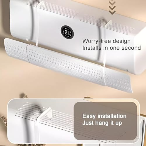 - صُمم واقي المكيف متعدد الوظائف لتركيبه بسهولة، حيث يمكن تعليقه ببساطة دون الحاجة لحفر الحائط. وهذا ما يضمن عدم وجود أي صعوبة أثناء التركيب أو إحداث الضرر للجدران، مما يجعله إضافةً خاليةً من المتاعب لنظام تكييف الهواء.