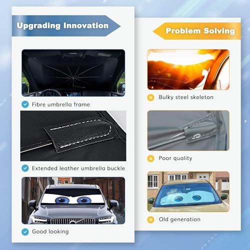 Mittenhugs - شماسة للزجاج الأمامي للسيارة قابلة للطي بدوران 360 درجة وقابلة للانحناء وتحجب الحرارة بالكامل، شماسة للزجاج الأمامي للسيارة تحافظ على برودة السيارة وعازلة للحرارة (عيون سوداء-49×31)