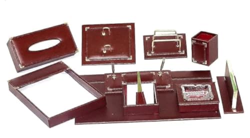 Generic - طقم مكتب جلدي فاخر مكون من 11 قطعة النبيذ، أحمر