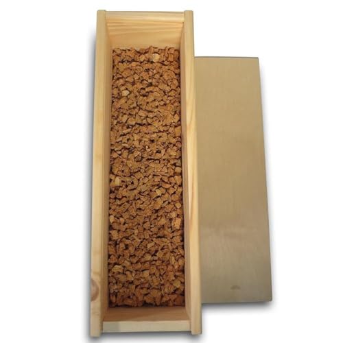 Kork-Deko - صندوق نبيذ فارغ من الخشب بتصميم كاسيت مع حبيبات الفلين لتغليف زجاجة نبيذ