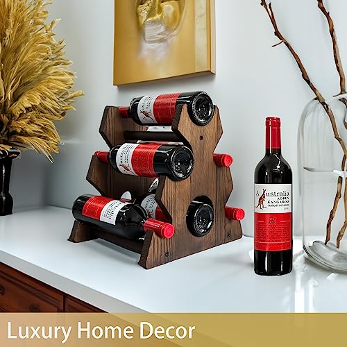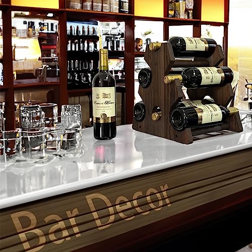 YINGAVERSAI - رف مشروبات لسطح الطاولة، حامل 6 زجاجات نبيذ، رف تخزين قائم بذاته لسطح الطاولة للمنزل والمطبخ وغرفة الطعام والبار، منظم نبيذ خشبي فاخر، هدايا مثالية لمحبي النبيذ