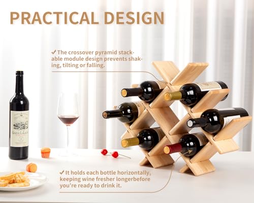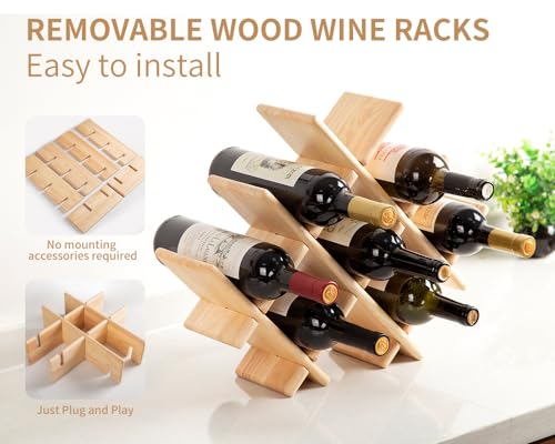 - 【رف نبيذ خشبي قابل للإزالة】مصنوع من خشب الحور الصلب، رف النبيذ هذا قابل للإزالة، بإجمالي 6 ألواح خشبية مع عروات تثبيت، التوصيل والتشغيل، سهل التركيب. مظهر ناعم وبسيط وجميل ومتين.