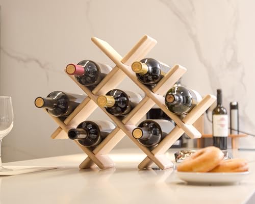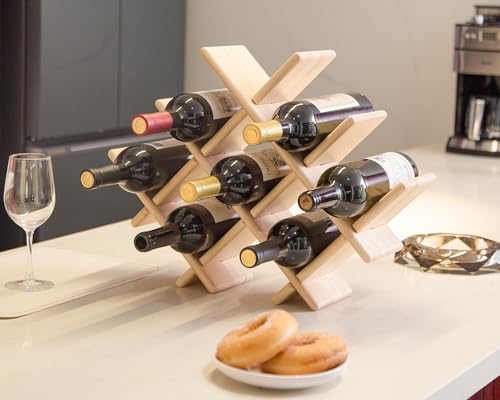 Decent Vrvege - رف خشبي لسطح الطاولة، رف تخزين لزجاجات النبيذ، رفوف قبو النبيذ، منظم المشروبات، حامل تخزين من خشب الحور، حامل تخزين زجاجات النبيذ، رف لسطح الطاولة للمطبخ