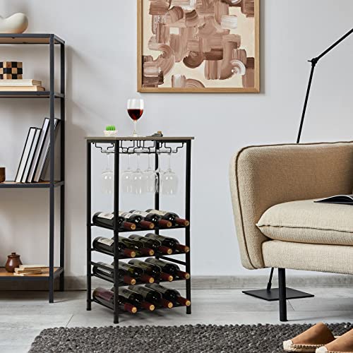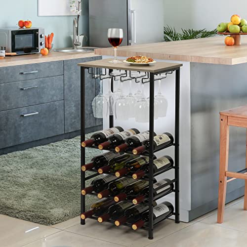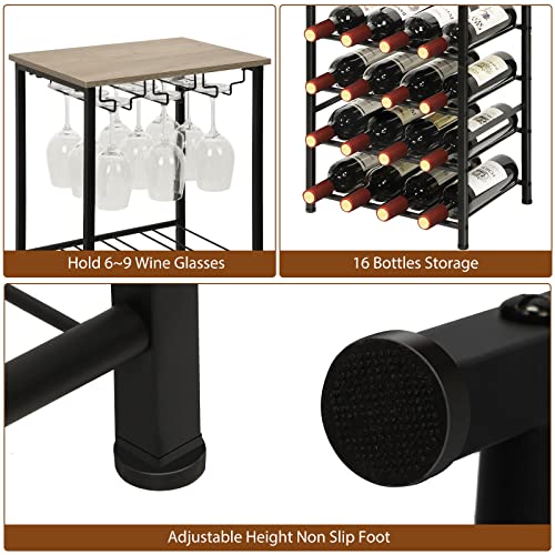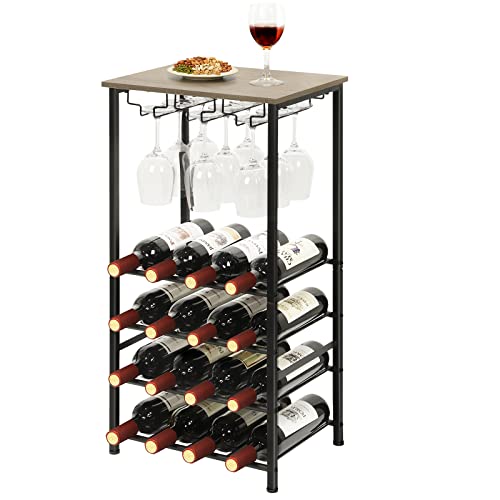 YBING - رف مشروبات قائم بذاته مع حامل زجاجي من خشب البلوط مكون من 5 طبقات من خشب البلوط و16 زجاجة، منظم زجاجات النبيذ، حامل تخزين للمنزل وغرفة المعيشة والطعام