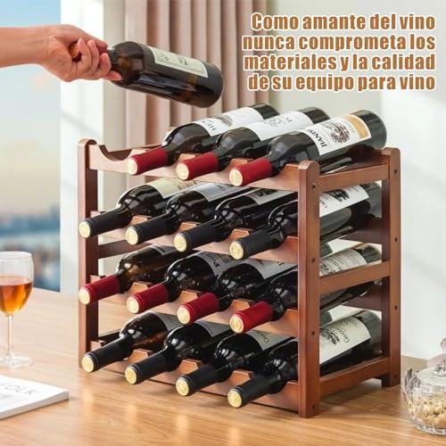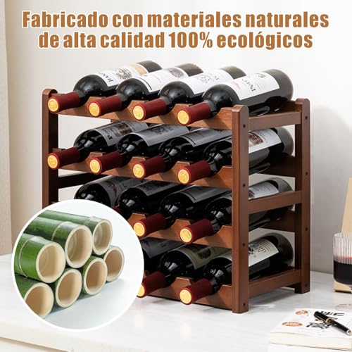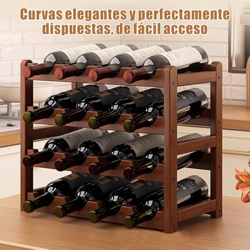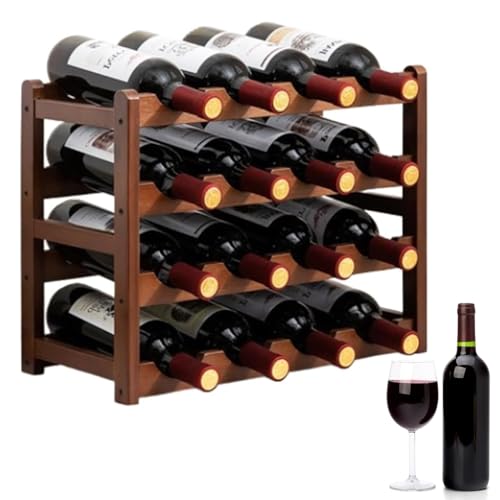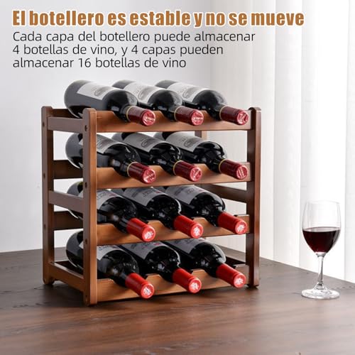 EARNKL - حامل زجاجات النبيذ، حامل زجاجات النبيذ، رف نبيذ قابل للتكديس من 4 طبقات، يحمل 16 زجاجة، للخزائن، بار المطاعم (خشب الجوز)