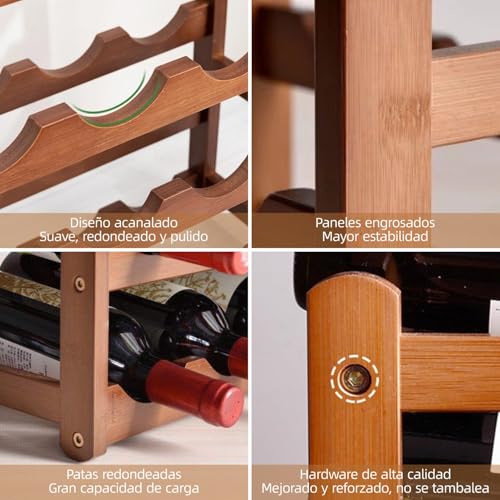 • مواد عالية الجودة: حامل النبيذ هذا مصنوع من مواد طبيعية صحية وعالية الجودة وصديقة للبيئة. ثم يتم معالجة السطح بطبقتين من الورنيش لتحقيق خصائص مقاومة للرطوبة والعفن، مما يجعله أكثر صداقة للبيئة وصحية. بفضل التصميم المتموج، تم تحسين الثبات وتعزيزه للحفاظ على زجاجات المشروبات مرتبة ومستقرة، مما يجعلها أقوى وأكثر متانة من الرفوف البلاستيكية.