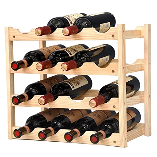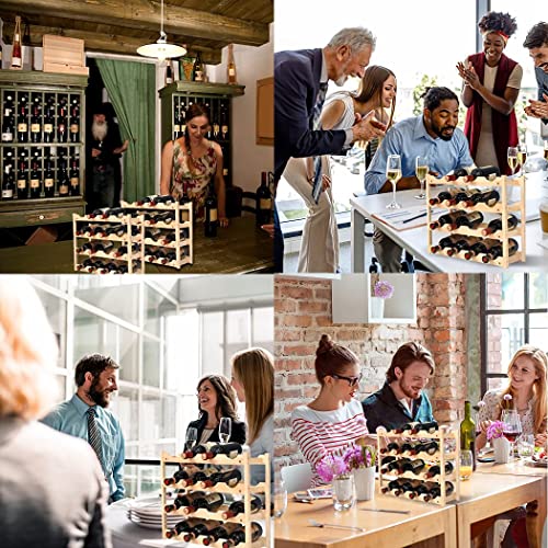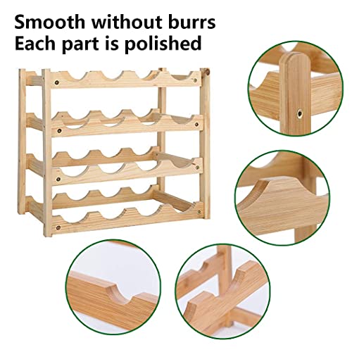 Grenf - رف خشبي لزجاجات النبيذ، رف تخزين النبيذ قابل للتكديس قائم بذاته، منظم 16 زجاجة للمطبخ وخزانة المؤن والبار وسطح الطاولة