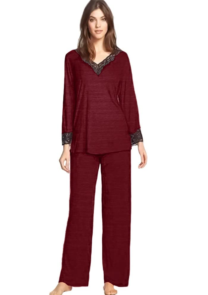 Generic - ملابس نوم نبيتى بيجامة نسائى قطن مطعم بجبير اسود