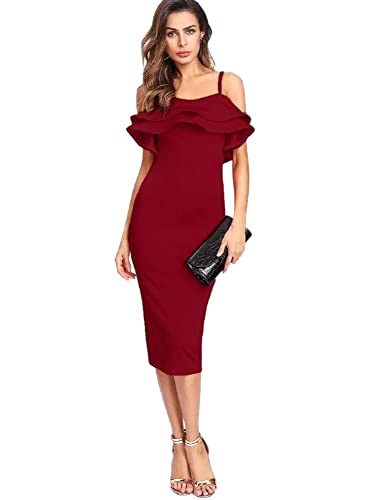 Generic - فستان بقصة مروحة عند الصدر وحمالات للنساء بلون نبيذي