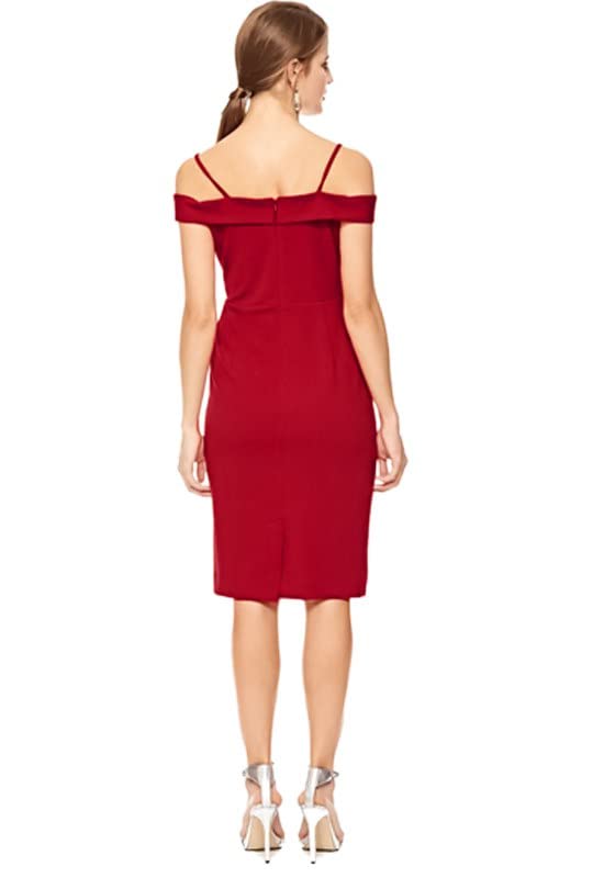 Generic - فستان انيق بدون اكمام بحمالات كتف للنساء، لون نبيذي