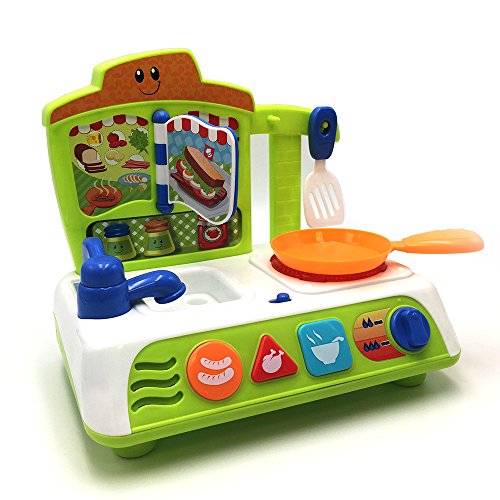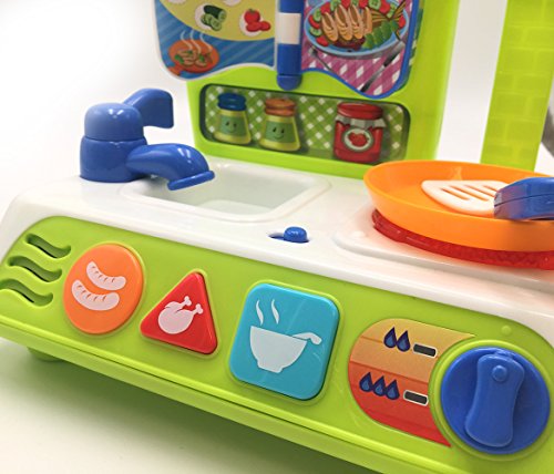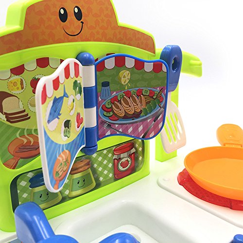 - التفاصيل: تأتي مجموعة اللعب مع ملعقة سباتولا ومقلاة. تتميز القائمة بتأثيرات صوتية ممتعة لتسلية طفلك. تحتوي على ثلاثة زرار ذات أصوات طعام مضحكة.