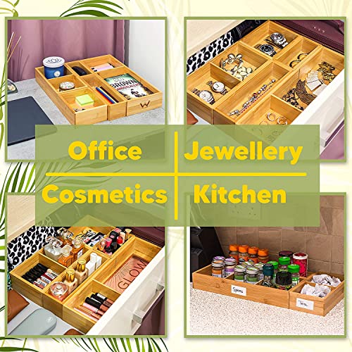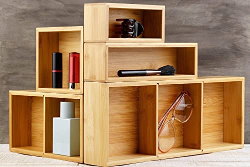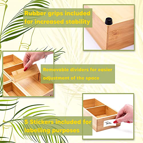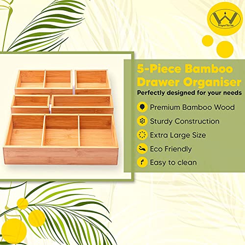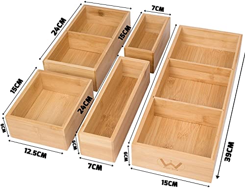Winged Sirius - منظم ادراج من الخيزران وينجد سيريوس مكون 5 قطع | مقصورات متعددة المقاسات مع فواصل قابلة للازالة | مجموعة صناديق تخزين خشبية متينة وسادات قدم اضافية | مثالية للاستخدام في المنزل والمكتب