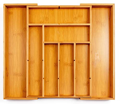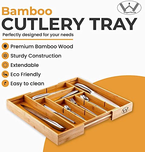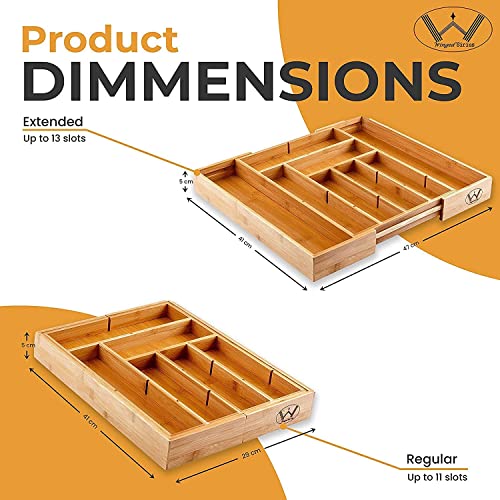 Winged Sirius - صينية ادوات مائدة مجنحة من سيريوس | منظم درج الخيزران مع فواصل قابلة للازالة | خشبية متينة وتدوم طويلا وسادات قدم اضافية | مثالية للاستخدام في المنزل والمكتب