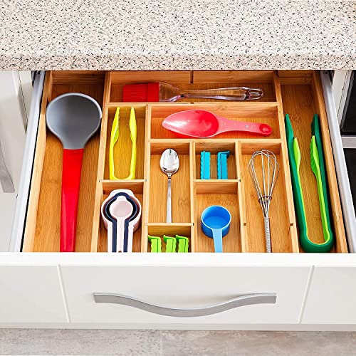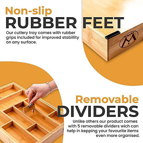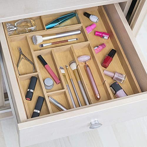 - منظم مثالي - يحتوي منظم المطبخ المصنوع من الخيزران الخاص بنا على 06 إلى 08 مساحات تخزين متعددة الأحجام مع 05 فواصل قابلة للإزالة تساعد في الحفاظ على أغراضك المفضلة منظمة بشكل جيد. يمكن لمنظم المجوهرات المصنوع من الخيزران تقسيم درجك إلى مناطق متعددة مما يجعل درجك يبدو مخصصًا ونظيفًا. يوفر لك منظم التخزين المصنوع من الخيزران الحل الأمثل من الأدراج الفوضوية ويجعل عملك منظمًا بشكل مثالي. تناسب صينية الأدراج المصنوعة من الخيزران معظم الأدراج المتوفرة في منزلك أو مكتبك