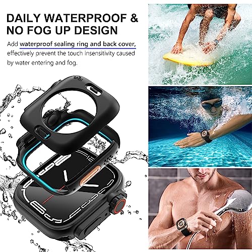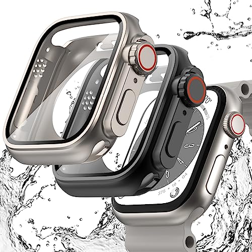 WINGLE - حافظة حماية 2 في 1 مقاومة للماء لشاشة ساعة آبل مقاس 45 ملم 41 ملم سلسلة 8 7 وسلسلة اس اي/SE2/8 7 مقاس 44 ملم 40 ملم بتصميم مشابه لحافظة ساعة آبل الترا للرجال والنساء من وينجلي، لون تيتانيوم/أسود
