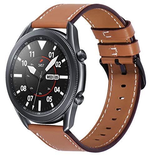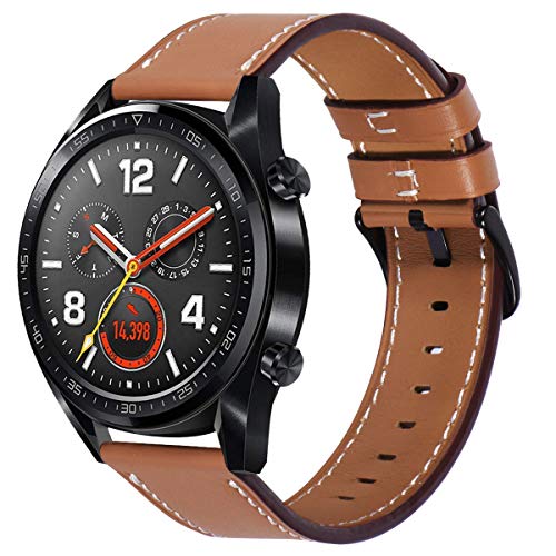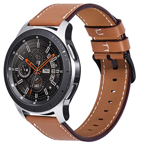 WINGLE - سوار بديل من الجلد الطبيعي من وينجلي، متوافق مع و22 ملم، وساعة سامسونج جالاكسي 46 ملم، وساعة جالاكسي 3 45 ملم وساعة هواوي GT2 46 ملم، بني