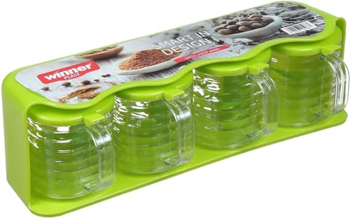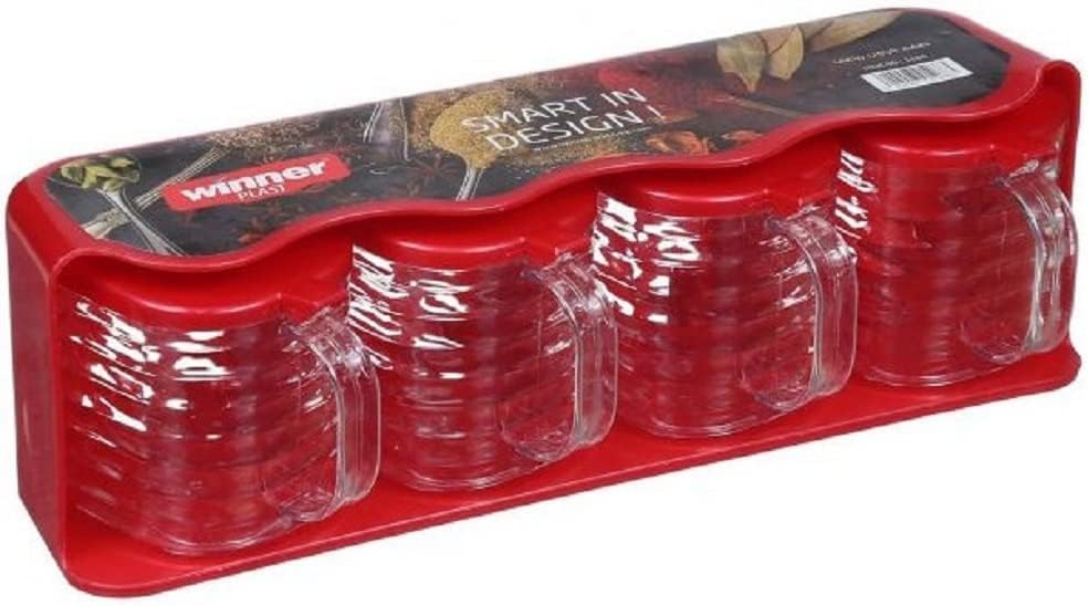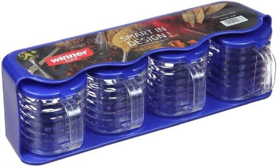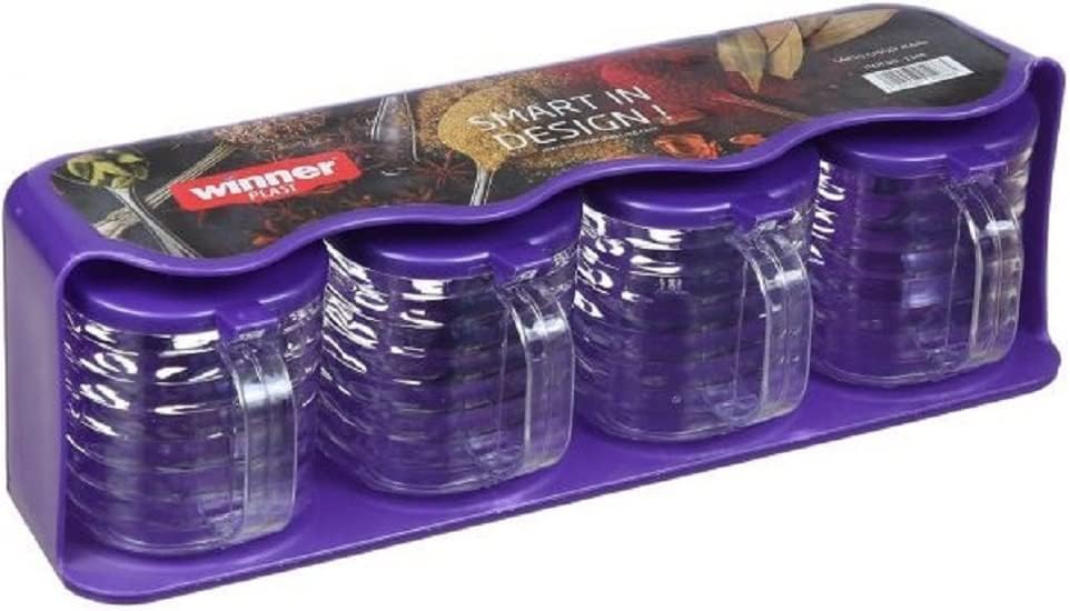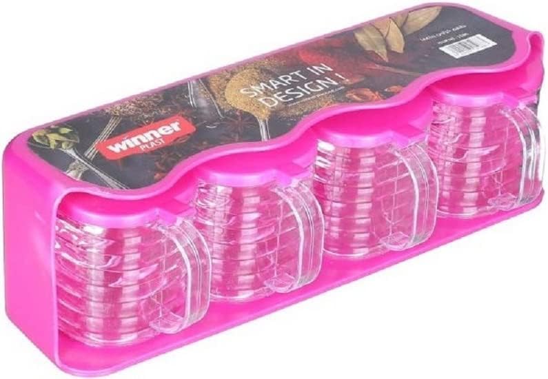 Winner Plast - مجموعة برطمانات توابل مصنوعة من البلاستيك بحامل وينر بلاست 4 قطع متعددة الالوان