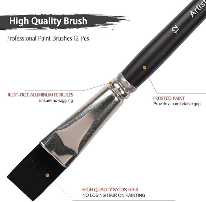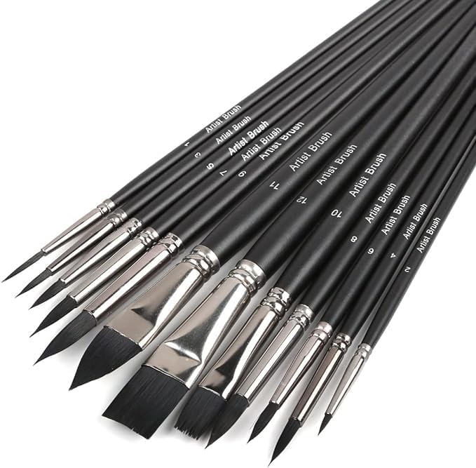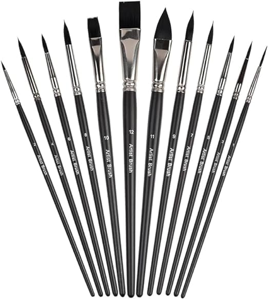 Generic - مجموعة فرش رسم للفنانين مكونة من 12 فرشاة فنية للالوان المائية والاكريليك والغواش والقماش الزيتي والرسم تيمبيرا للفنانين من وينسر