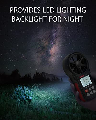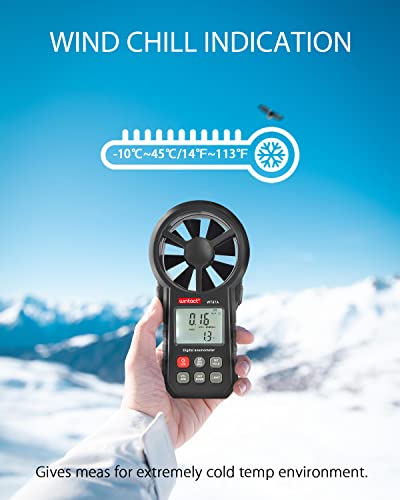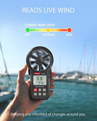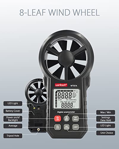 Wintact - مقياس شدة ريح محمول باليد رقمي لاختبار سرعة تدفق الهواء مع قياس درجة حرارة -10 إلى 45 درجة مئوية لمجاري تدفئة وتهوية وتكييف هواء منزلية وطائرات ورقية وقوارب وإبحار وركوب أمواج من وينتاكت (WT87A)