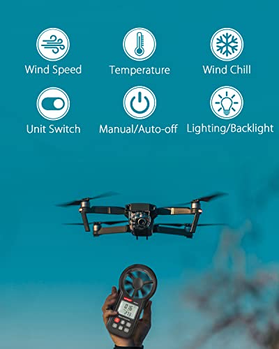 - متعددة الوظائف: يعرض القراءات على شاشة ال سي دي الكبيرة مع إضاءة خلفية للقراءة الليلية. يأتي مع وظيفة الاحتفاظ بالبيانات، الحد الأقصى، الحد الأدنى، المتوسط، قراءة سرعة الرياح الحالية، مؤشر انخفاض البطارية، إضاءة ليد، إيقاف التشغيل اليدوي / الإيقاف التلقائي.