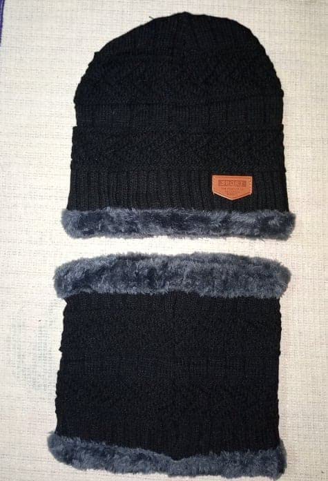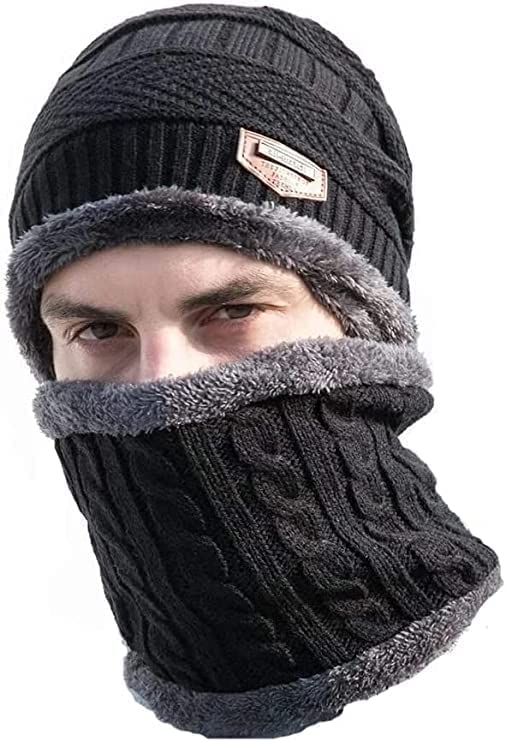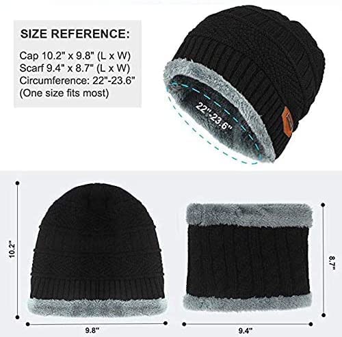 Year - طقم قبعة ووشاح شتوي من الصوف مكون من قطعتين، قبعة ايس كاب وسكارف شتوية دافئة محبوكة محبوكة مخططة للرجال والنساء