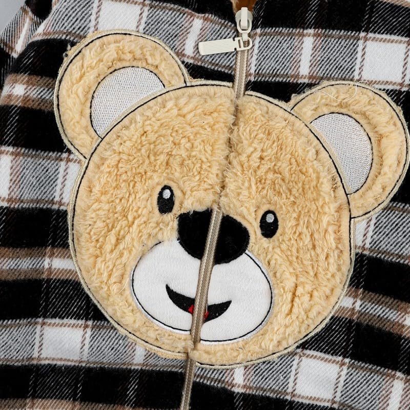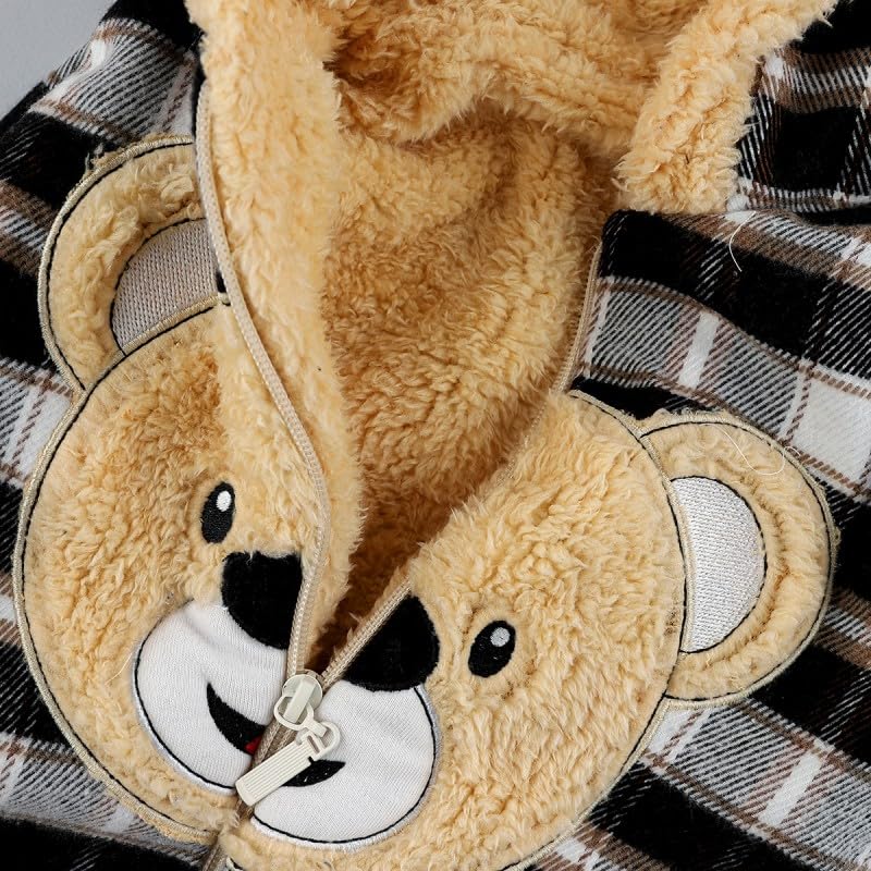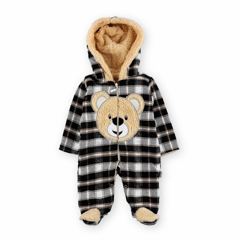 Generic - سالوبيت شتوي للاطفال بعمر 3-6 اشهر بتصميم كاروهات ودب