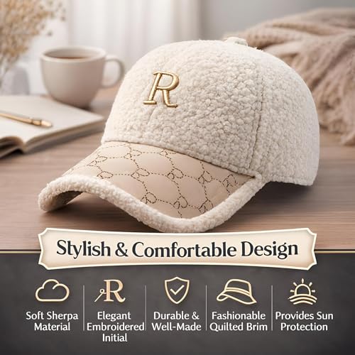 Generic - قبعة بيسبول شتوية - مصنوعة من القطيفة بلون أبيض كريمي وتطريز نجمة بلون ذهبي، مقاومة للرطوبة، مقاس قابل للتعديل من أجل الراحة والأناقة في الطقس البارد