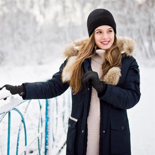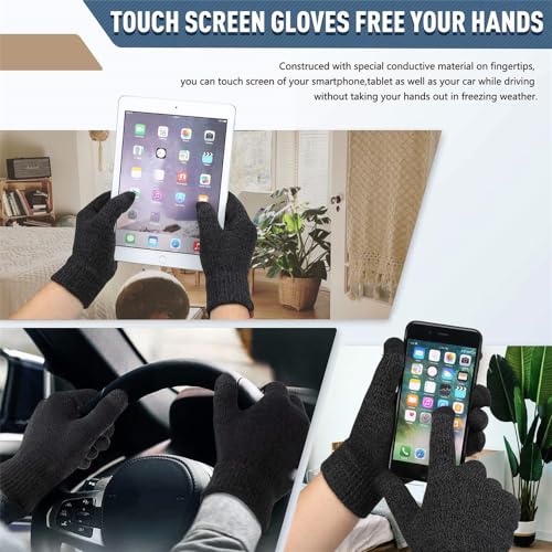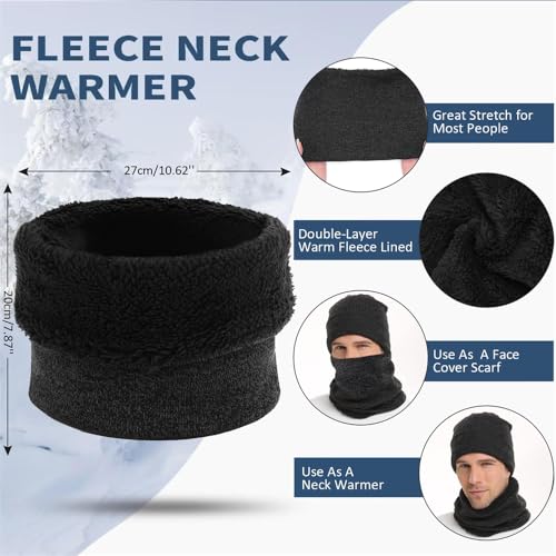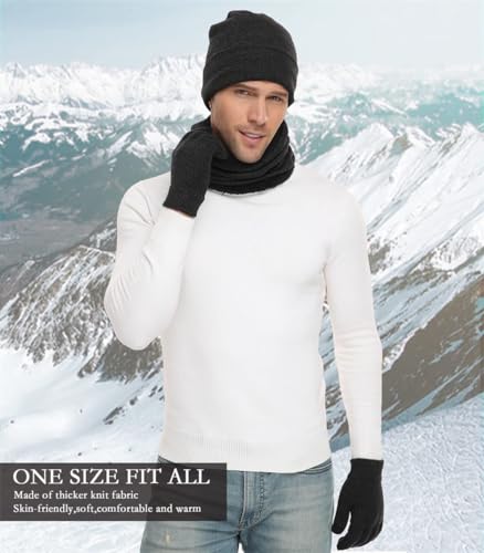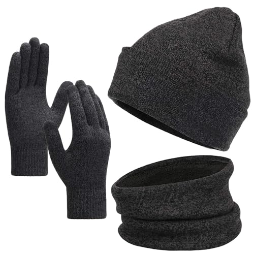YARDHOBI - طقم طاقية صغيرة شتوية وسكارف وجوانتي مناسب مع الشاشات التي تعمل باللمس للرجال والنساء، مجموعة لتدفئة الرقبة مع بطانة صوف محبوكة ودافئة، قبعة شتوية لتدفئة الرقبة للرجال والنساء، مجموعة من 3 قطع