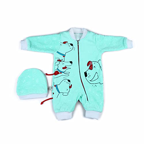 Generic - سالوبيت بكباسين شتوي للاطفال بعمر 3-6 اشهر بتصميم كلب مع قبعة - ازرق سماوي
